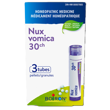 Medicinal ingredient: Nux vomica 30ch, (4gram-approximately 80 pellets).