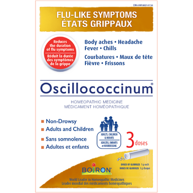 Boiron Oscillococcinum is homeopathic medicine for the relief of flu-like symptoms such as body aches, headaches, fever and chills. Reduces the duration of flu symptoms.