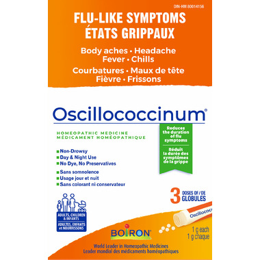 Boiron Oscillococcinum is homeopathic medicine for the relief of flu-like symptoms such as body aches, headaches, fever and chills.