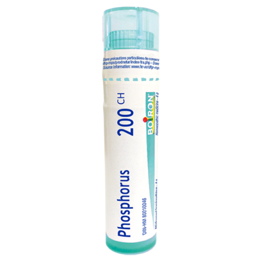 Boiron Phosphorus is homeopathic medicine. The pellets are unflavoured and melt in your mouth. Easy to take, this homeopathic medicine is suitable for the whole family, adults and children.