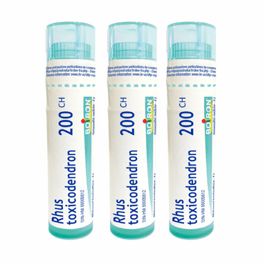 Medicinal ingredient: Rhus toxicodendron 200ch, (4gram-approximately 80 pellets).Non-medicinal ingredients: Sucrose and lactose