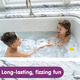 - LONG-LASTING, FIZZING FUN FOR BATHTIME: Drop one bath bomb into the bathtub and watch it bubble, swirl and fizz for bathtub fun and sick day comfort. Each bath bomb dissolves cleanly. Includes 3 long-lasting bath bombs (2.8 oz. each).