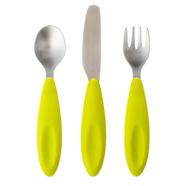 Let the scooping, shoveling, and slurping begin! So your toddler wants to eat like a big kid but doesn't quite understand the concept of pokey tines that can make holes in things other than food. No problem! Boon flatware works as well as the grown up version but is designed with toddlers in mind. And see the cute little handles? They're designed for that "hammer grip" kids love so much. Look out, peas and carrots. Your days are numbered!