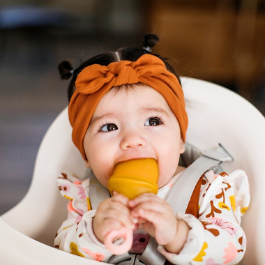 CHEW ON THIS: Boon doesn't mean to mouth off, but let's be real about how mesh feeders can be a real mess and difficult to clean. Their silicone teething feeder has some bite to it: allowing for easy feeding with its interior firm stem that forces food out where babies can get to it. It's simple to clean and more durable than mesh feeders. Boon totally has a handle on a baby's snack time and when something is this good, we think it's okay to get a little mouthy about it