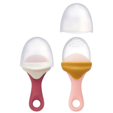 Self Feedibg: Soft Silicone cover allowsbaby to self-feed on fruits and vegetables through small openings
