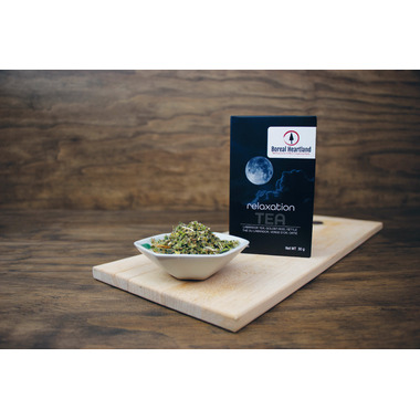 Boreal Heartland Relaxation Tea is a delicious blend of Labrador tea, goldenrod, and nettle. Perfect for a bedtime tea, this infusion brews bright yellow. The aroma and flavour are reminiscent of chrysanthemum blossoms and morning meadow grass, with moments of honey and sage. Notes of pine linger on the nose. Caffeine free, the Relaxation Blend is hand picked in the Northern Saskatchewan Wilderness
