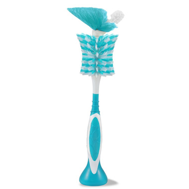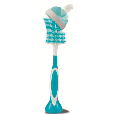 The Born Free® breeze™ 2-in-1 bottle brush is designed to make thorough cleaning of bottles and nipples a breeze. The integrated nipple brush allows for quick and easy nipple cleaning and also reaches those tricky nooks in bottles. The brush stands when not in use, has a comfort grip handle, and is top-rack dishwasher safe. The breeze bottle brush works with most major bottle brands and is BPA-free.