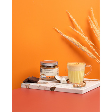 Chocolate Turmeric Golden Mylk is a warming latte mix made from a whole food blend of turmeric, cocoa, dates, coconut, vanilla, ashwagandha and black pepper. Made in small batches and free from any fillers and artificial ingredients. Now enjoy it with the added decadence of chocolate.