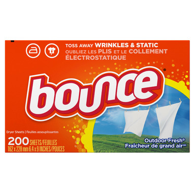 Classic Bounce outdoor fresh scent Helps Reduce Wrinkles Controls static cling in fabrics Helps repel lint and hair Softens fabrics For use in all types of dryers (HE & Regular)