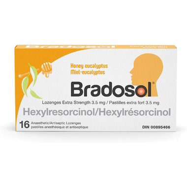 Bradosol Extra Strength lozenges contain 3.5mg hexylresorcinol, a dual action medication that provides soothing relief of sore throat and helps kill bacteria.