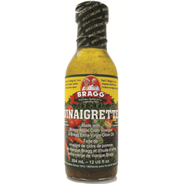 This vinaigrette dressing makes a salad special with its tasty, tangy flavour. A zesty blend of their Bragg Organic Apple Cider Vinegar, Bragg Organic Extra Virgin Olive Oil, purified water, organic honey, organic garlic, Bragg Liquid Aminos, organic onion, and organic black pepper. Contains no added preservatives.