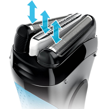 The Braun Series 3 3040 Wet & Dry Shaver features a new Independently floating cutting elements for better contour adaptability and less skin irritation.