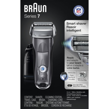 The Braun Series 7 shaver includes Sonic technology to read and adapt to your beard. Four shaving elements capture more hair in every stroke to provide a close, comfortable shave without compromises.