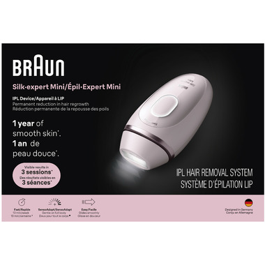 The Braun Silk-Expert Mini is a safe, easy and efficient** IPL hair removal device for women that delivers visible hair reduction in just three months*. Equipped with cutting-edge SensoAdapt technology, this IPL hair removal device automatically adjusts to your skin tone in real-time, ensuring an optimal balance of efficacy and safety for personalized laser and facial hair removal for women. Skin tone varies across the body, so the SensoAdapt sensor with UV protection continuously reads your skin and adapts the flashes for the safest and most efficient hair removal.