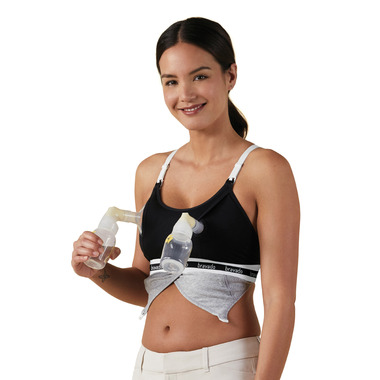 The patented Clip and Pump Hands-Free Nursing Bra Accessory, made with a soft and sustainable blend of organic cotton and TENCEL Modal, combines pumping discretion with ease of use. The innovative design features a figure 8 opening for easy bottle insertion and removal. Transform your Bravado Designs nursing bra into a pumping bra by attaching the Clip and Pump to its 'B' nursing clips - no need to remove your top!