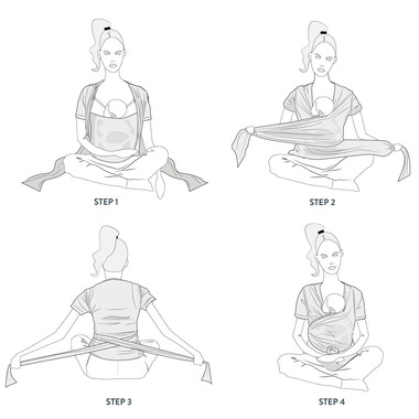 - Ties wrap around mom and baby for a snug fit.