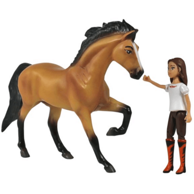 Take the adventure of the all-new DreamWorks series Spirit Riding Free with you wherever you go! Perfect for on-the-go play, Breyer's Spirit and Lucky Small Set features an approximately 3" tall poseable Lucky figure, and approximately 4" tall Spirit! Lucky can ride her mustang Spirit bareback and bridleless, just like on the show Spirit Riding Free!