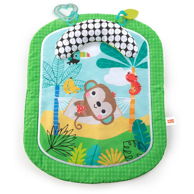 Tummy time is a breeze with the Easy Breezy Prop Mat from Bright Starts! This compact mat gives baby a comfy space to stretch out whether you’re at home or away. With 2 newborn toys included, tummy time is play time! Baby will love watching the rattle’s colorful beads and exploring the textures of the green leaf toy. Toss them in the diaper bag for on-the-go fun! This tropically cool playmat also comes with a prop pillow, so even the newest of newborns can spend some time on their tummies. Hang out and chill out with the cheerful monkey and his tropical friends. It’s a playmat party!