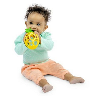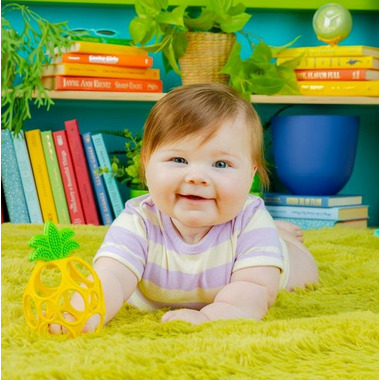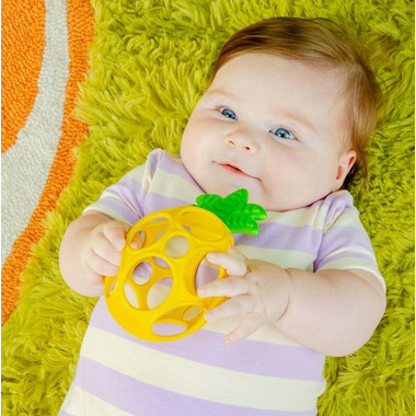 - Easy to grasp pineapple toy made from Bright Starts flexible, durable Oball technology features finger holes for small hands to hold and play