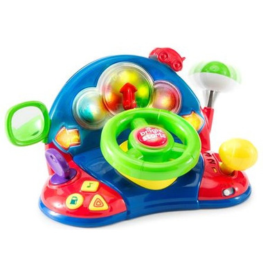 The Bright Starts Lights & Colors Driver drives baby to discover numbers, opposites, sing songs and more! When baby turns the steering wheel, the odometer moves and the turn signals blink. Baby can shift gears to hear numbers and car engine sounds. Three buttons activate caution lights, radio sounds and gas tank noises. Honk the horn, start the ignition, adjust the mirror and rattle the antenna. The car on the dashboard ratchets backwards and forwards. Your little driver will race in place with plenty of activities to keep little hands engaged.