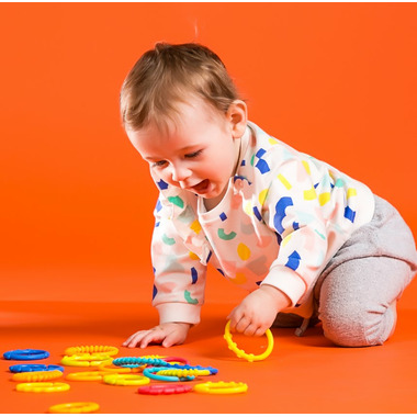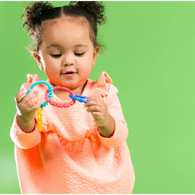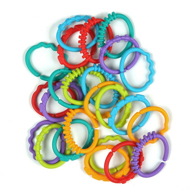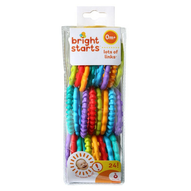 Like a stick of gum or trusty hair tie, you'll always be glad to have a handful of these bendy, colorful links within reach. They're one of their bestsellers for a reason. While baby keeps busy twisting, squeezing, bending, smushing and the BPA-free plastic links, you'll be shocked by their ability to attach toys to play areas and gear items. Baby won't stop kicking her toys out of the seat, then squealing for help? Bright Starts Lots of Links to the rescue! Toys keep falling to the sticky restaurant floor? The links will come in handy for all sorts of situations, and even work as a teething toy too. Good thing theres 24 of them included in this pack.