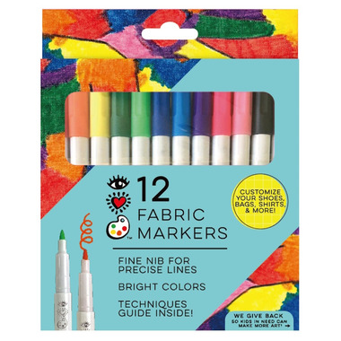 Customize your clothes, shoes, and all things fabric with these 12 vibrant fabric marker colours! The precision tip nibs allow you to write and draw in fine detail, making your creations even more intricate. No heat setting is needed simply colour and let the ink dry, and it will become permanent. If you make a mistake, just rinse with water before the ink fully dries to correct it. The included Artist Techniques Guide offers full instructions, as well as tips and project ideas to help you get started. These markers are suitable for ages 6 and up.