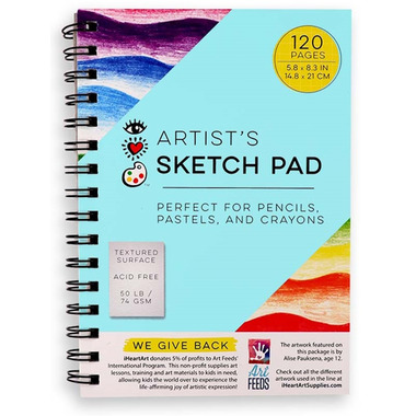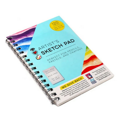 5.8" x 8.3" Spiral Bound Pad of thick sketch paper. Includes 120 sheets and has a paper weight of 50lbs. Great for on the go!
