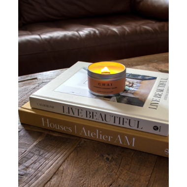 Scent notes: Chai Spices, Nutmeg, Cinnamon, Vanilla This Chai candle is cozy and warm, just like drinking a hot Chai tea on a chilly night in front of a crackling fireplace. With its warm and energizing scent, this candle helps with clarity and feeling relaxed.