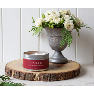 Scent notes: Cranberry, Cedar, Cinnamon, Sandalwood Take a trip to a luxurious cabin in the woods with this candle. It has a comforting blend of cranberry, cedar, cinnamon, and sandalwood, perfect for feeling warm and comforted.