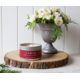 Coconut soy wax, wooden wick, fragrance oil Metal container
