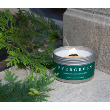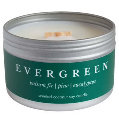 Scent notes: Balsam Fir, Citrus, Cedar, Pine This bestselling woodsy candle smells like a real evergreen tree with notes of balsam fir, citrus, cedar and pine. With its uplifting, grounding scent and crackling wood wick, Evergreen will bring you warmth and cheer.