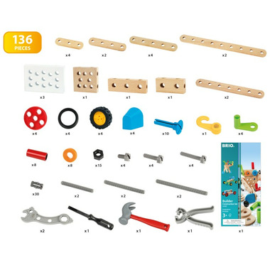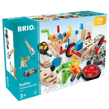 Design, build and rebuild again with the perfect building toy to test the minds of budding engineers. The Builder Construction Set contains all the components and tools you'll need to build almost anything your mind can design. This 136-piece construction kit gives children a fun way to experiment creatively and practice hand-eye coordination with detailed tools and parts made in wood and plastic. Use screwdrivers, hammers, wrenches, nuts, bolts and more to build your creations.