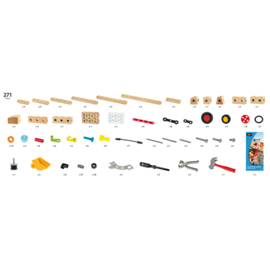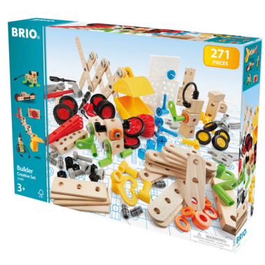 Design, build and rebuild again with the perfect building toy to test the minds of budding engineers. The 34589 Builder Creative Set is the ultimate BRIO Builder set and contains all the components and tools you’ll need to build almost anything your mind can design. This construction toy set contains 271 play components including easy-to-use construction tools such as hammers, screwdrivers and wrenches, wooden and plastic parts to base the construction around, and active features such as wheels, pivots and bolts - everything a young inquisitive mind needs.