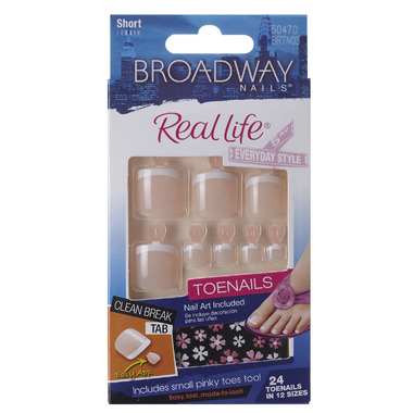 Need a natural looking pedicure in minutes? Real Life Toe Nails give you the perfect pedicure that' easy to apply with our patented Self Tabs. We even include those little tiny toe nails so you can have 10 perfect toes.