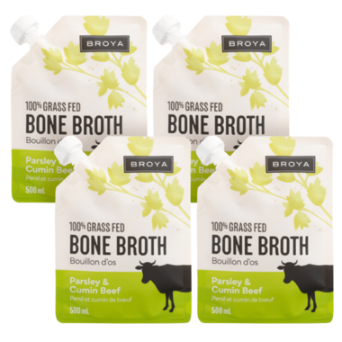 - 4x Broya Bone Broth Parsley & Cumin Beef, 500mL