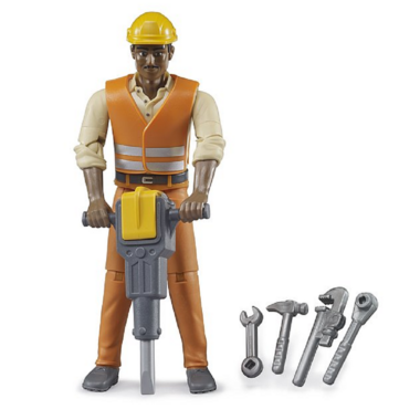 The construction worker with accessories is the ideal supplement to any construction vehicle that is part of the productline. Just to be "safe", Bruder Toys has included a hard hat and a high-visibility vest to allow the worker to start working right away.
