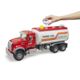 The MACK Granite tanker truck is the most recent addition to the MACK fleet. It represents an awesome combination of cab with chrome-look features and a fully functional tank. In addition to the opening doors, the cab features numerous options, such as the opening hood and the folding outside mirrors. The fully functional tanker body also brings about a lot of new functions for Bruder Toys' young tanker truck drivers.