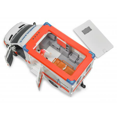 The new Sprinter Ambulance has now been added to round off the range of emergency service vehicles we have! When recreating an emergency situation, this vehicle with its many functions is very important! Thanks to the new light and sound module featuring various siren signals and lighting functions, the ambulance will quickly and safely reach any incident! The paramedic can access the cab using the opening doors and gains access to the cutting-edge treatment area through the opening rear doors and side doors as well as the removable roof module. Any Bworld figure can be safely transported on the height-adjustable stretcher that moves in and out of the vehicle.