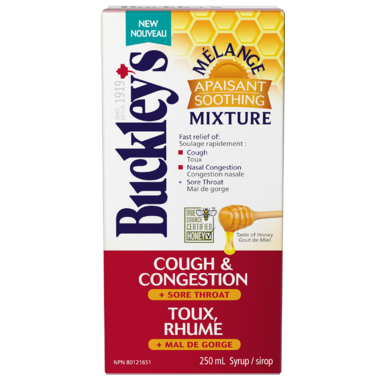 - New Buckley's Soothing Mixture combines the heritage of Buckley's Original formula with Naturally sourced honey* (honey flavour) to help relieve your worst cold symptoms of cough and nasal congestion, plus relieve your sore throat.