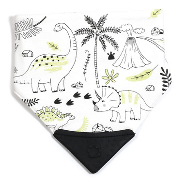 This practical accessory allows your little one to chew safely and cleanly! This cotton bib absorbs drool and features a textured silicone teether that is gentle on your babys gums, allowing them to chew on the silicone part to help relieve the discomfort associated with teething.