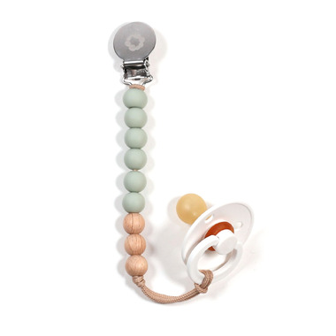 Bulle Teething Pacifier Clip Wood & Silicone Sauge