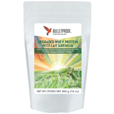 Bulletproof® Upgraded Whey Protein is a minimally processed nutritious supplement derived from grass-fed cows not treated with hormones. The addition of Bulletproof XCT Oil powder (MCTs) along with Colostrum, makes this blend unique.