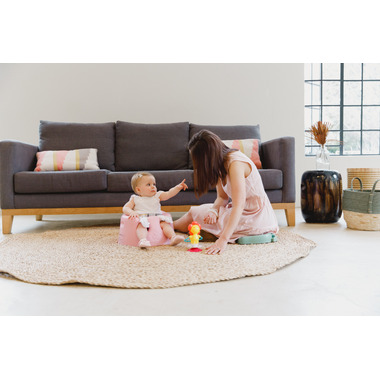• Contoured for Ultimate Support - The deep seating surface and elevated leg openings of this baby floor seat gently recline the baby toward the centre of the rounded backrest, easing the baby into an upright position.