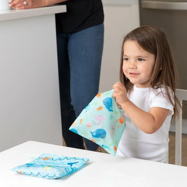 Help save the Earth, one small change at a time. An Alternative to single-use plastic bags, these reusable bags are made from the same easy-wipe waterproof and stain-resistant fabric as the Bumkins Superbib! A smooth zipper closure locks in crumbs, and a single ply construction means no worrying about icky stuff growing between layers of fabric. Great for food and fun, snack bags help organize lunches, toys, electronics, and so much more! Snack Bags make excellent organizers for storage or travel!