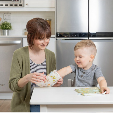 The better alternative to single-use plastic bags, Bumkin reusable large snack bags / sandwich bags are made from the same waterproof fabric as Bumkins award-winning SuperBib. Single-ply construction means no worrying about icky stuff growing between layers of fabric. Great for food and fun, snack bags help organize lunches, toys, electronics and more. They’ll even fit a bagel!