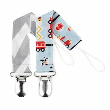 Bumkins Pacifier Clip Fire Truck and Grey Chevron