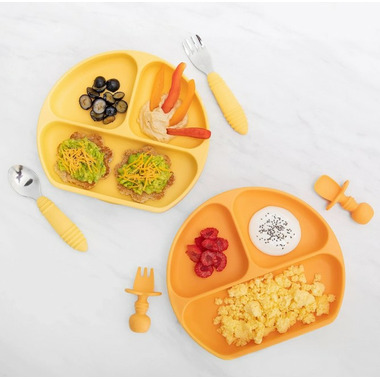 Bumkin designed Chewtensils for Stage 1 of baby-led weaning – introducing babies to the concept of holding a utensil and feeding themselves. Made from soft, textured, food-safe platinum silicone that’s easy to grip and gentle on tender gums, with bendable heads for safety. The back of the spoon head has sensory bumps to stimulate gums. They’re perfect for dipping into puréed foods at the early part of baby led weaning. Chewtensils can be chewed on by younger babies before they’re ready to transition to silverware.