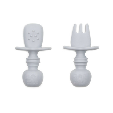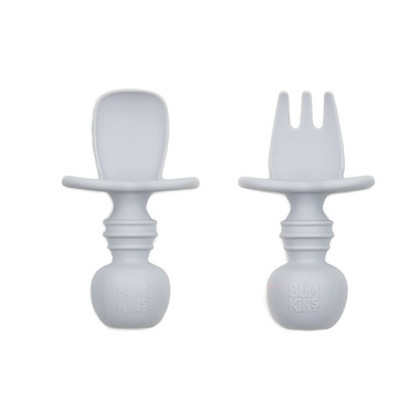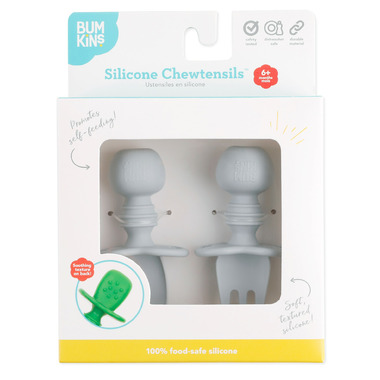 Now little ones can bite the spoon that feeds them! New Bumkins Silicone Chewtensils™ are meant to introduce babies to self-feeding by giving them cutlery that can be chewed on. Easy to hold and made from soft, textured silicone that is gentle on gums, babies can dip the Chewtensils in food and then practice the motion of self-feeding as they go from food to mouth. Set contains a fork and spoon. Do not leave baby unattended with product.