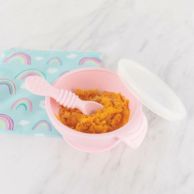 Bumkins Silicone First Feeding Set with Lid and Spoon Pink is rated