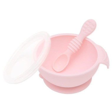 Bumkins Silicone First Feeding Set with Lid & Spoon Pink